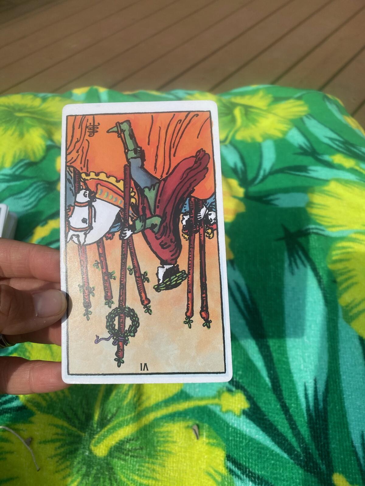 The Six of wands Reversed can also suggest that you have reached a milestone or personal achievement and are not ready to share. Instead you feel more comfortable keeping this to yourself. This could be because it is personal or you are uncomfortable with recognition and praise. If this resonates with you, it’s time to check your energy! Don’t be afraid to shine and share your accomplishments.
